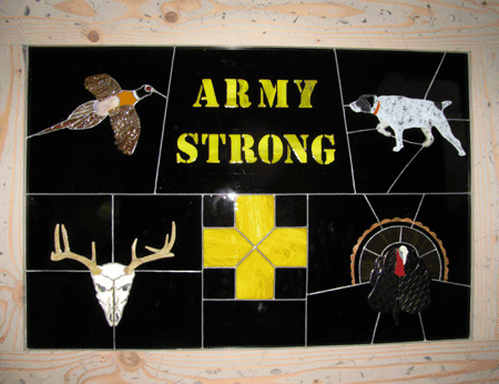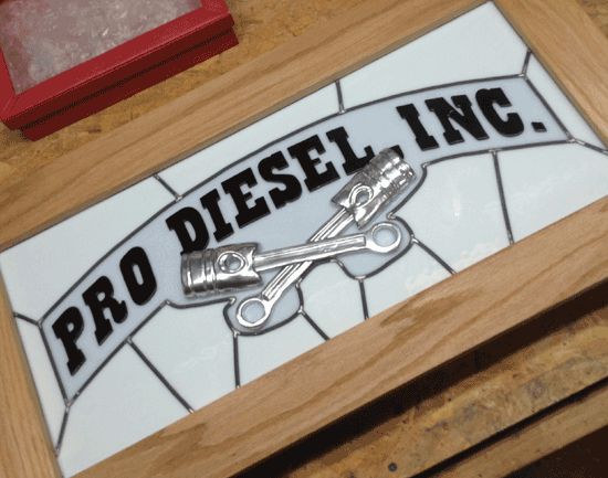 Digger's Dungeon in green on opaque white glass, lighted sign trimmed in oak